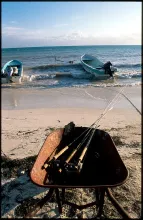 Our original plan was to leave Punta Allen after a week and go to Rio Lagartos for tarpon on the North coast of Yucatan. A call to our local contact spoiled that. The cold wind was head on the coast up there, and his best advice was to stay where we were and get the best out of what we had. There was no fishing in Rio Lagartos!