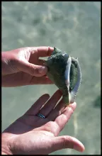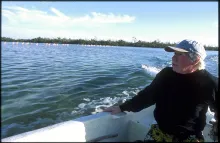 Once there he has the keen eye to find the fish. In the beginning you will feel intimidated by the massive amount of surface that you have to scan, and whenever he points and says "There!", you will feel tempted to think he is lying to prove the he is worth his fee, because you see nothing.