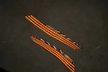 Main wing Dyed orange and red turkey and topped with Argus pheasant.